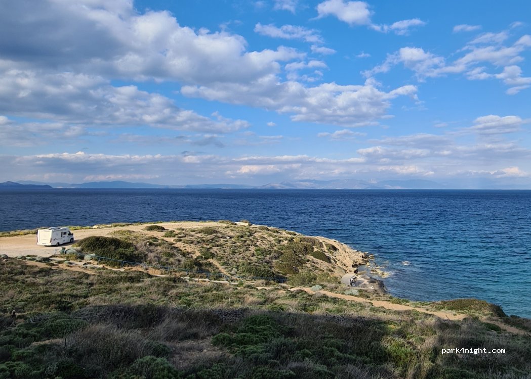 Très beau point de vue sur la mer. Attention au vent, mettre le camping-car bien en face. Endroit calme, possibilité de baignade.