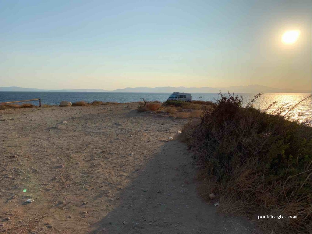 Ich sehe hier seit 2 Nächten. Lidl nicht weit entfernt. Werde am Samstag weiterfahren. Platz ist windig. schon mit Griechen Kontakt gehabt. Bis jetzt keine Schwierigkeiten.