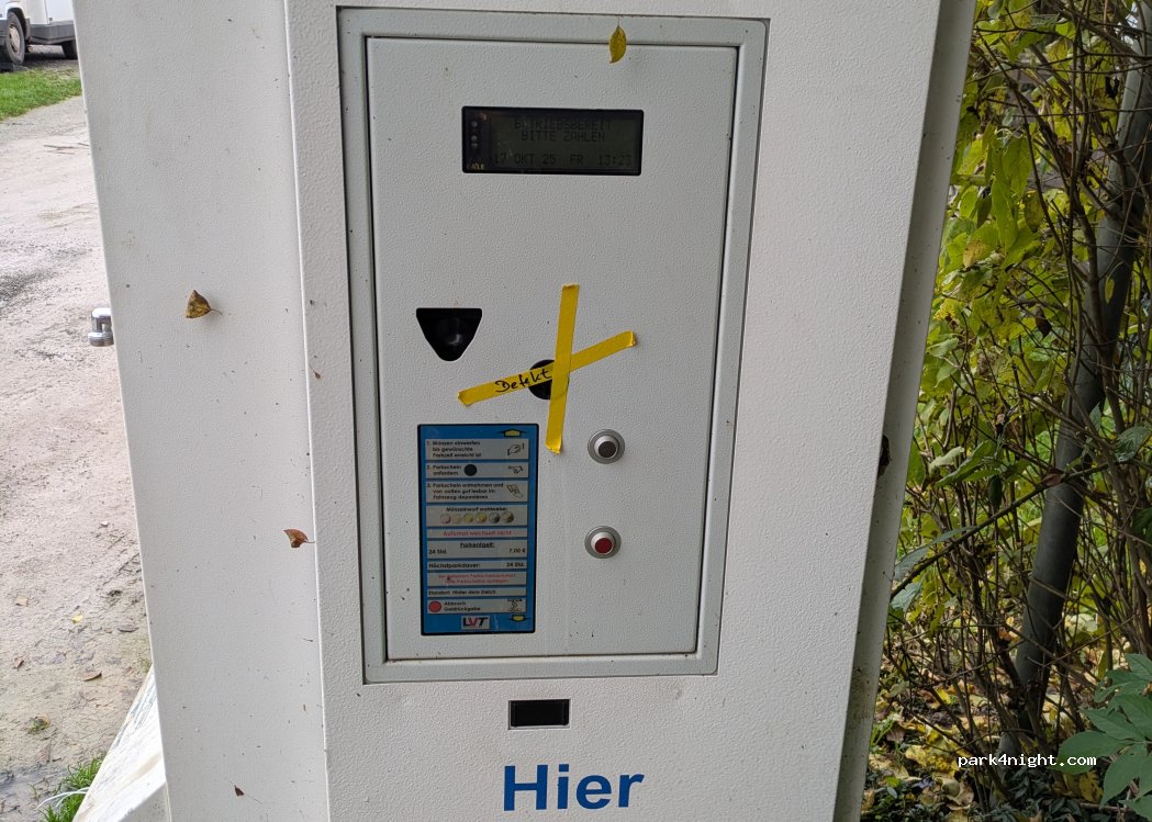 Der Platz selbst gefällt mir, habe nichts auszusetzen. Aktuell geht der Parkscheinautomat nicht und an der einen Stromsäule gehen von 6 nur 2 Anschlüsse. Mein Nachbar hat auch schon auf der anderen Seite angeschlossen…ich nun auch, ohne umzuparken. Habe der Gemeinde eine Mail mit diesen Infos gesendet…