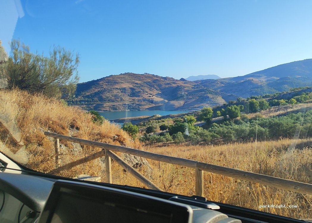 Aparcamiento tranquilo para pasar la noche y disfrutar de las vistas del pueblo iluminado por su castillo. También vistas al embalse Zahara-El Gastor.