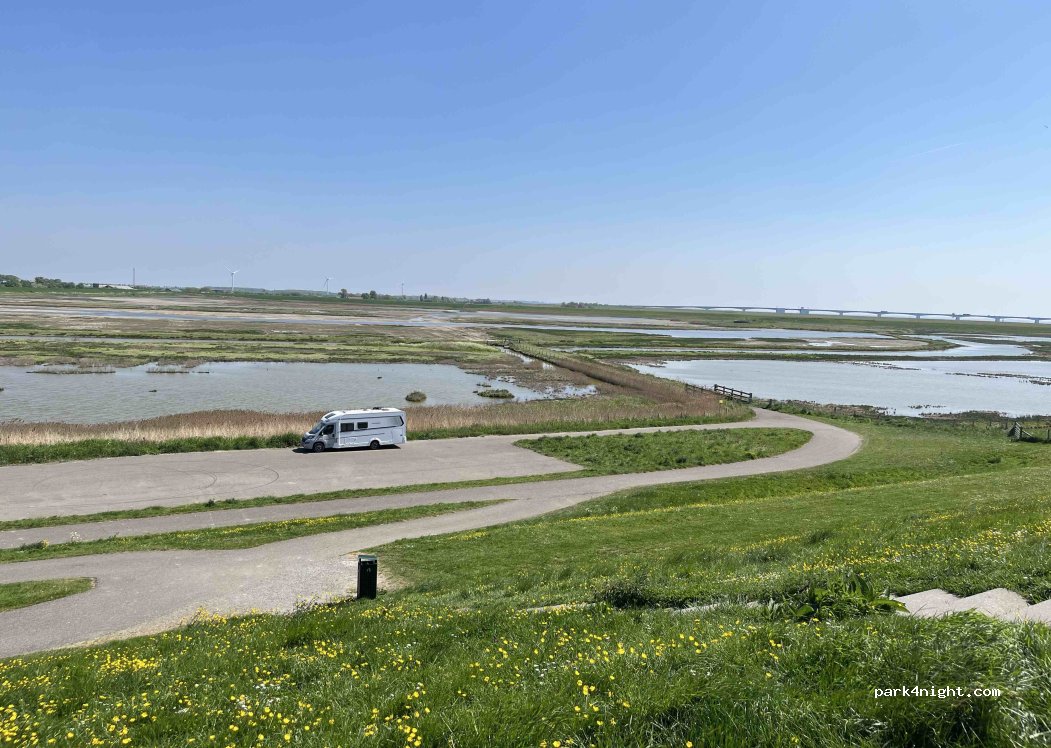 Het is niet toegestaan hier de nacht door te brengen. Maar wij hebben hier een middagje fijn gestaan. Vlak aan de Oosterschelde.