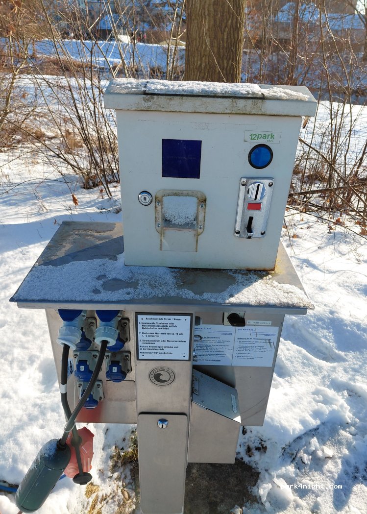 Die Wasserversorgung hat einen nicht durchdachten Standort. Wenn alle Plätze belegt sind, benötigt man einen langen Schlauch. Die Parkuhr spuckt einen Parkschein aus, der um 23:59 Uhr des Tages endet. Da muss man denn um Mitternacht raus und einen neuen holen. Nun die Nacht war ok. Danke für den Platz. Leider waren am Montag alle Restaurants dicht.