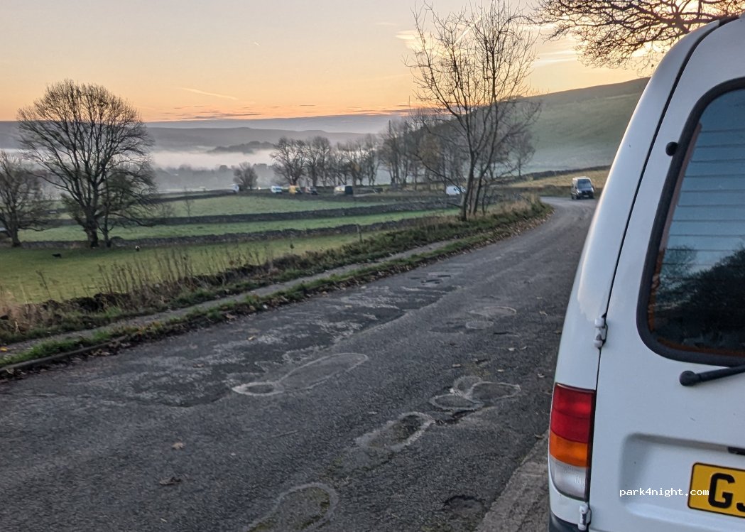 Great place to park on the old Mam Tor road the dead-end stretch just below the hill. It’s a line of roadside pull-ups rather than a car park, but once the day hikers clear out it becomes properly quiet and really dark, perfect for switching off and settling in. Great views it’s spot-on whether you’re planning an early morning climb up Mam Tor follow us for more