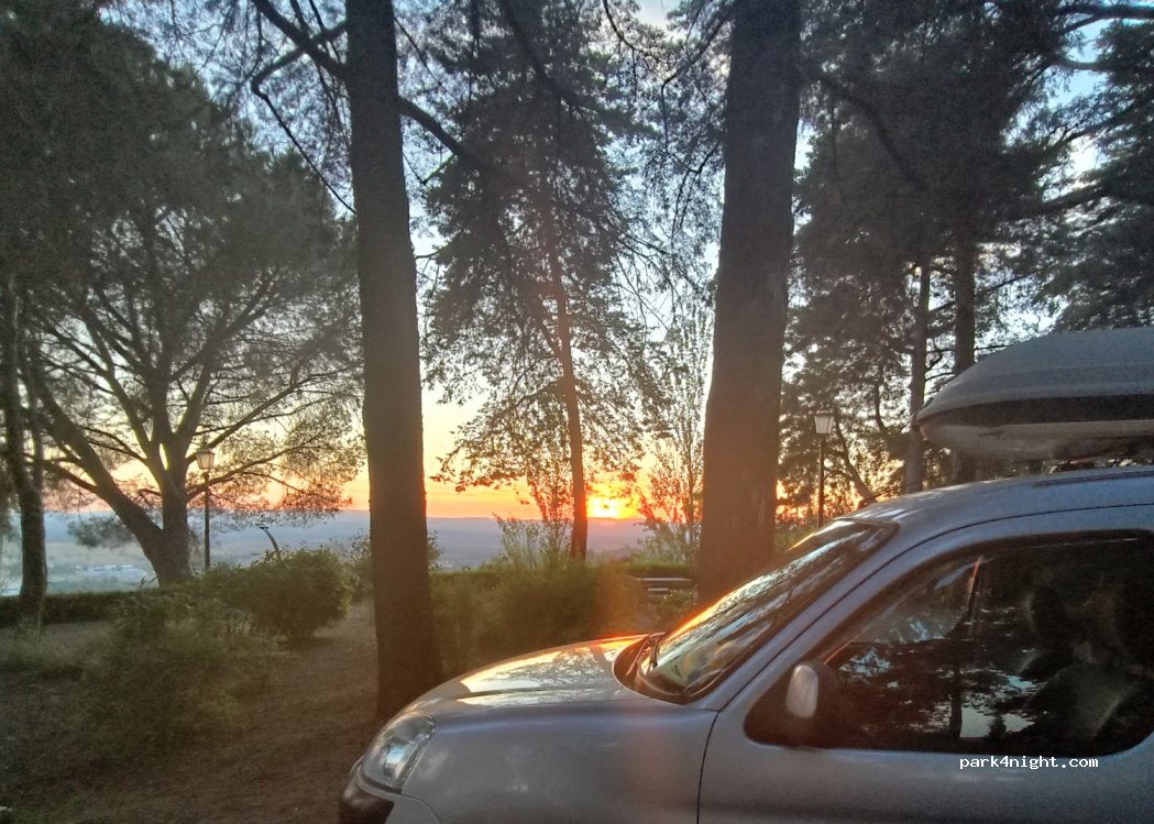 AVOID WEEKEND STOPOVERS!!! very beautiful historical place . easy to get to in 7.5tonne and length bus . shady spots to park with plenty of trees no signs forbidding overnight stops so we stayed 1 night in our campervan . public toilets we’re closed . there were some litter bins . lovely panoramic view of city, pleasant walks, quiet and fairly tranquil in the day til 7pm, lots of families / dog walkers walking and relaxing easy access to city centre through traditional streets ... however a warning! we stayed saturday night in late august and it was like a festival til 3am! from 9pm onwards hundreds of people and cars come and go til 11pm for a late visit that was ok..... but unfortunately after 12 midnight/1am onwards loads of young teen racers with loud music chatting partying revving engines meet here til the very early hours, hey it’s their fun but we didn’t get any sleep woke in the morning to the place being tranquil with no one there but feeling very very tired and disappointed of our very poor nights sleep ! .....stay at your own risk or if you’re young it’s a great place to stop over and party! ;)
