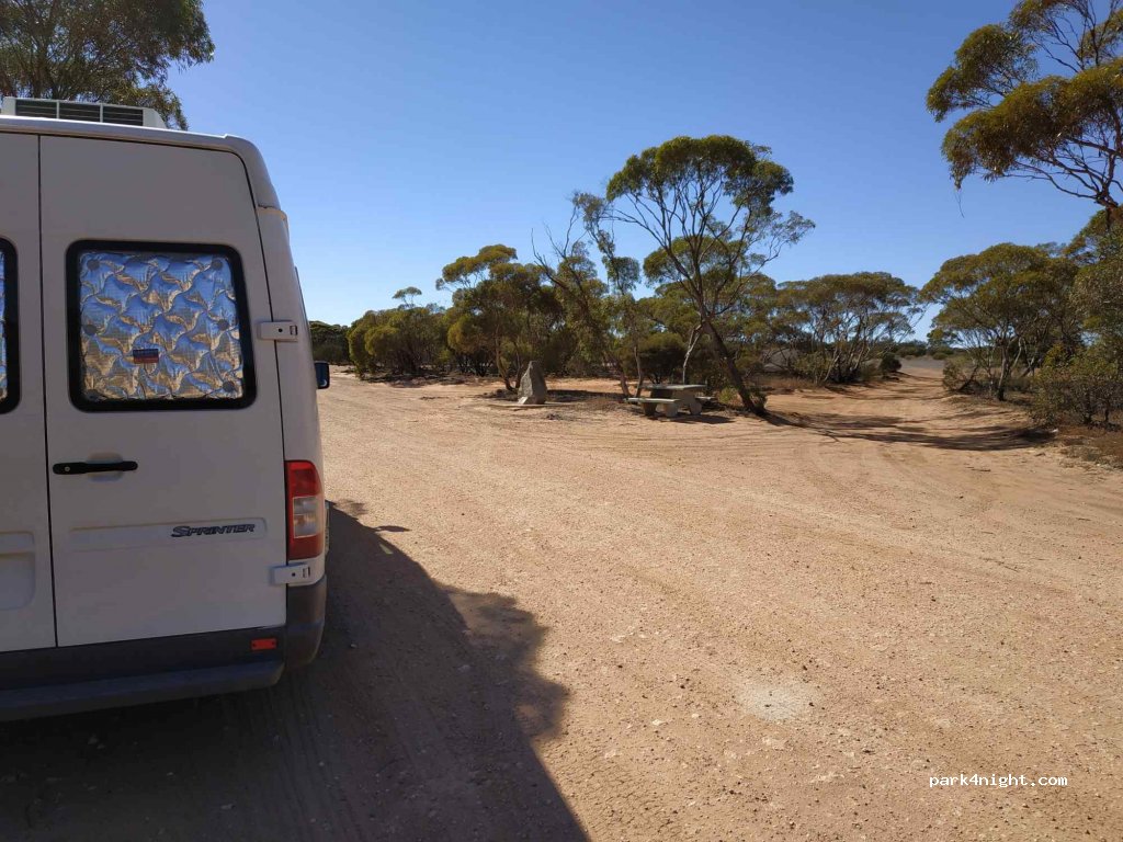 Aire au milieu de rien mais sauvage et assez éloignée de route. Table et barbecue possible.