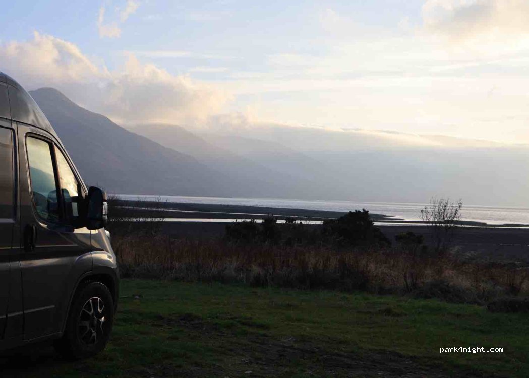 Insane view across the water - roads are quiet enough to walk around and watch the resident ponys at the trekking centre, sheep (with plenty of playful lambs APRIL TIME) and wild birds birds by the sea. Self-contained motorhome 7.1 metres no issues finding a spot with space for our dog. Road access has plenty of passing points for a safe journey. £7 pp, cash, at some point in the evening.