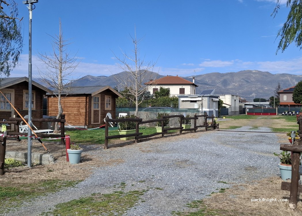 een ruime camping voor caravans en campers. water en elektra op de plaats ruime plaatsen van 80 á 90 m² met gras ondergrond. Afstand tot centrum Albenga minder als 1 km. riante plaats om toilet en grijs water te lozen. afstand naar zee schat ik op 1,5 km. sanitair is gedateerd. maar met goed warm water. rustig gelegen.