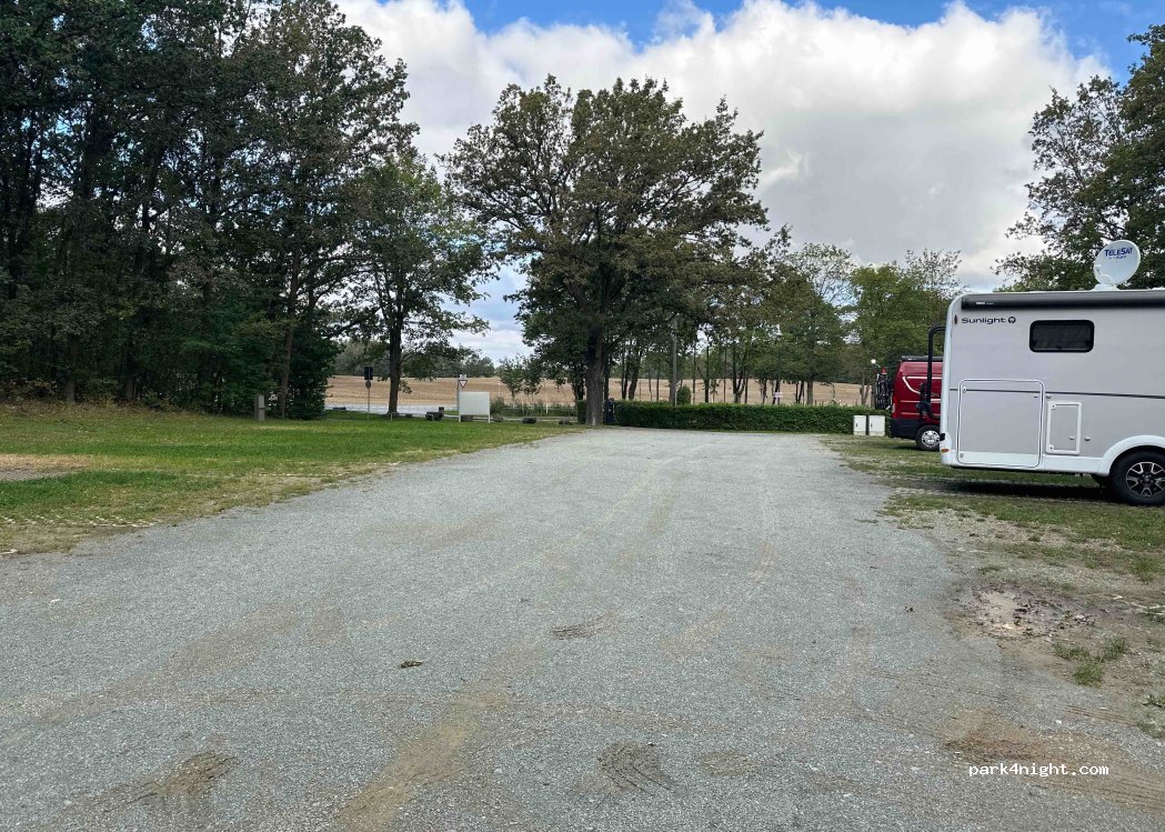 Paid parking space. Water and electricity included in park fees. V/E takes place at the campsite next door.