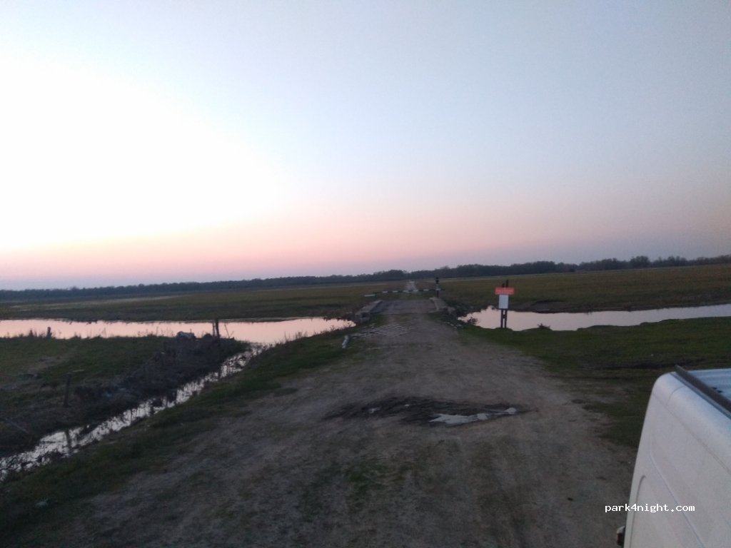 Place to park by the entrance to the national park. It's very quiet and no one bothers you, you can walk straight into the national park for a walk and open your door onto the river. Just check the ground before you park to make sure you don't get stuck in the occasional mud patch.
