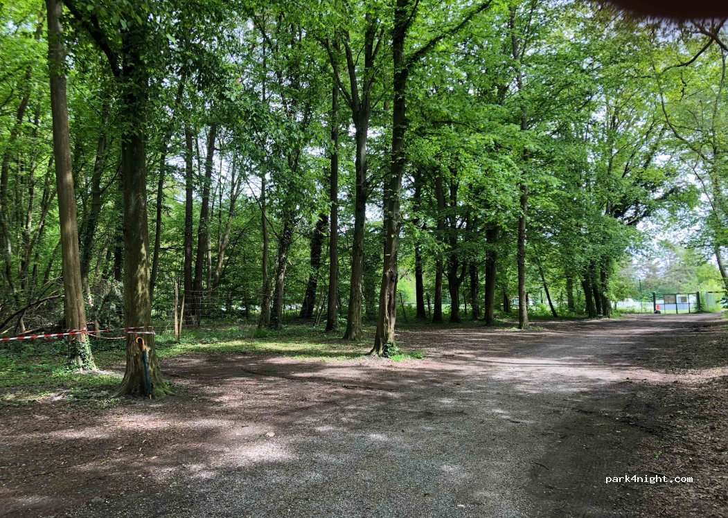 Très bel emplacement en orée de la forêt sur le chemin d'accès au stade. Nous sommes restés 3 soirs fin août, jamais plus de 3 vans/fourgons. La nuit est noire et calme, à part le bruit de fond de l'autoroute. Parking qui peut être plein si réunion ou match au stade (jeudi) mais ça se libère vers 23h. Le vendredi soir bruit de sono (discothèque pas loin ?). Je recommande.