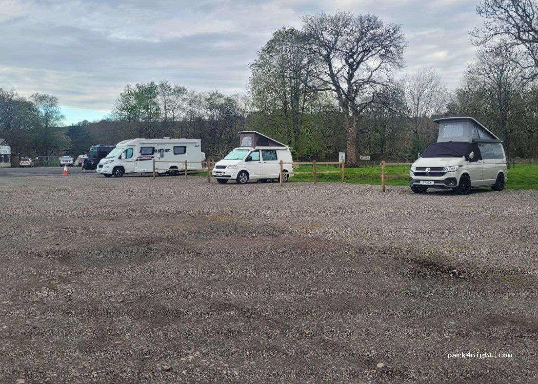 Paid £12 2 adults with campervan and dog for non EH aire style pitch. As a stopover it works fine. Showers and toilets seemed quite new. £1 for shower lasts about 3mins on a hot setting. The downer on this site is the Chem waste point. Open the grid and pour it in…not pretty and an assault on the senses. This area needs upgrading. In all other aspects it works. Shortish walk into Moffat.