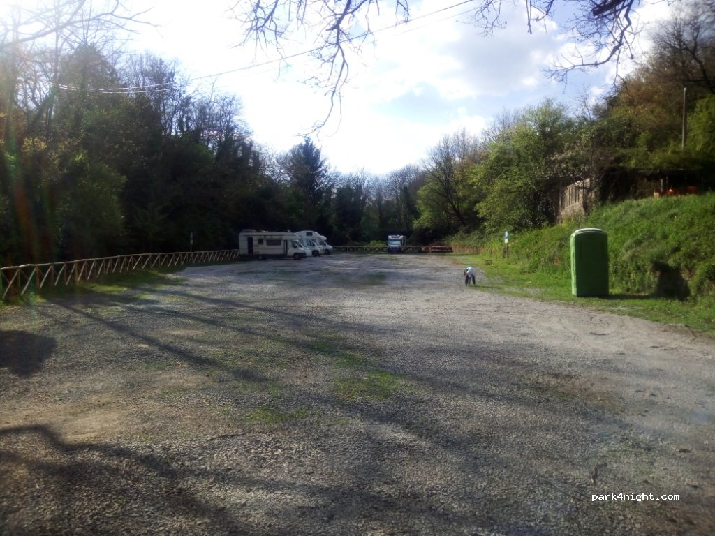 Tranquille un peu à l'écart de la ville et à 2,5km de civita. 1€/h ou 5€ jusqu'à 20h le soir. seulement pour le parking pas de commodité pour le CC. Pratique pour visiter.