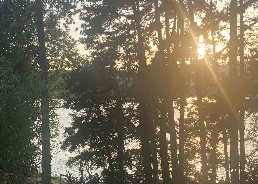 Arrivée tardive. Bonne nuit. légère pente, il faut bien orienter le van. Facile pour un 5m40, au delà (6m40, comme le nôtre) les manœuvres sont un peu plus précises, ça passe juste. Réveil agréable au bord du lac, toilettes propres et table de pic nique. Utile pour une nuit.