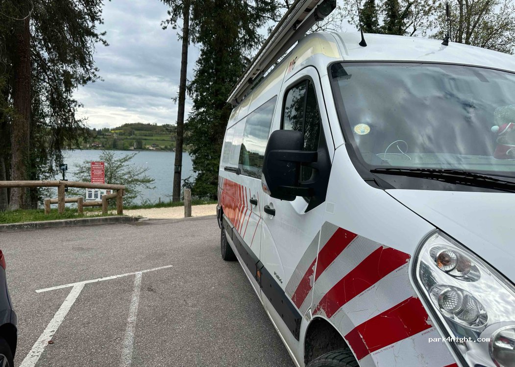 Bof bof , endroit au bord du lac mais sans intimité au bord d’une route ! Attention place en épi compliqué de sortir du parking si grand véhicule.