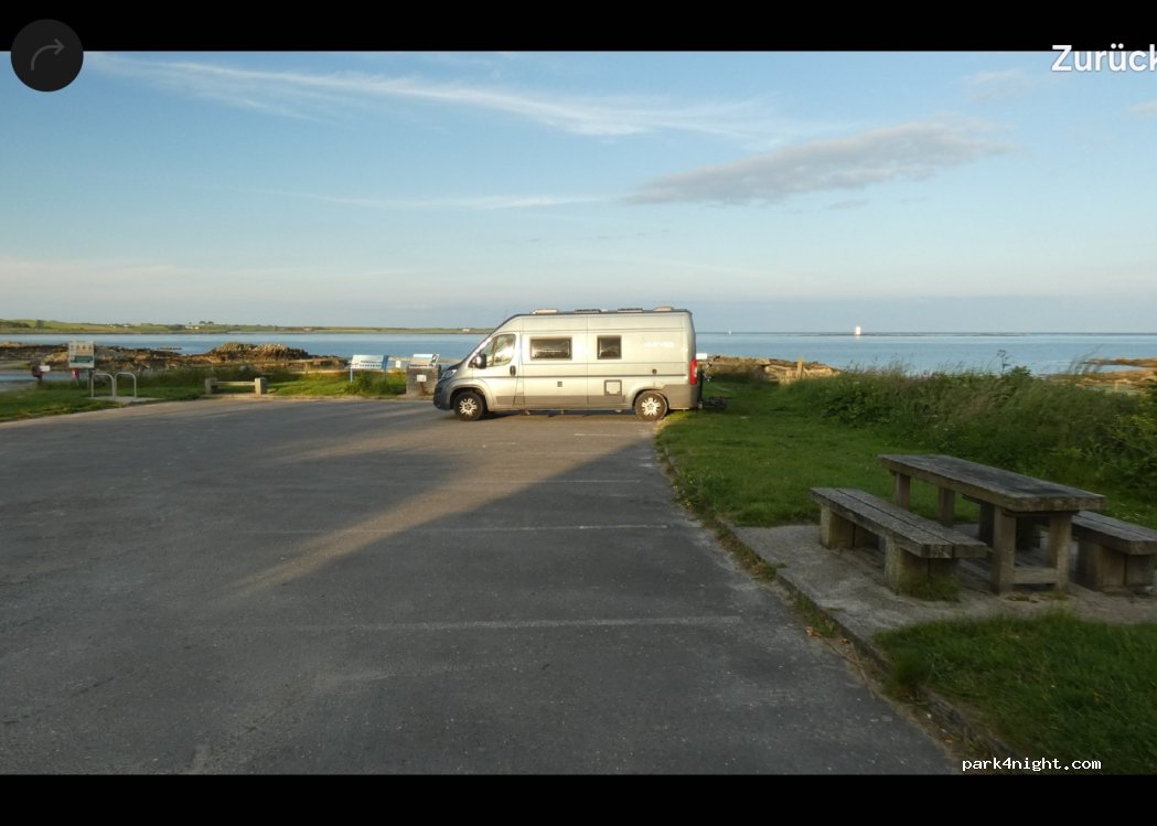 Notte tranquilla in questo parcheggio lato strada, non disturbato di notte. Fronte spiaggia dove poter ammirare l'alternarsi delle maree. Non adatto a camper grandi. Utilizzato dai locali, quindi rispettate gli spazi.