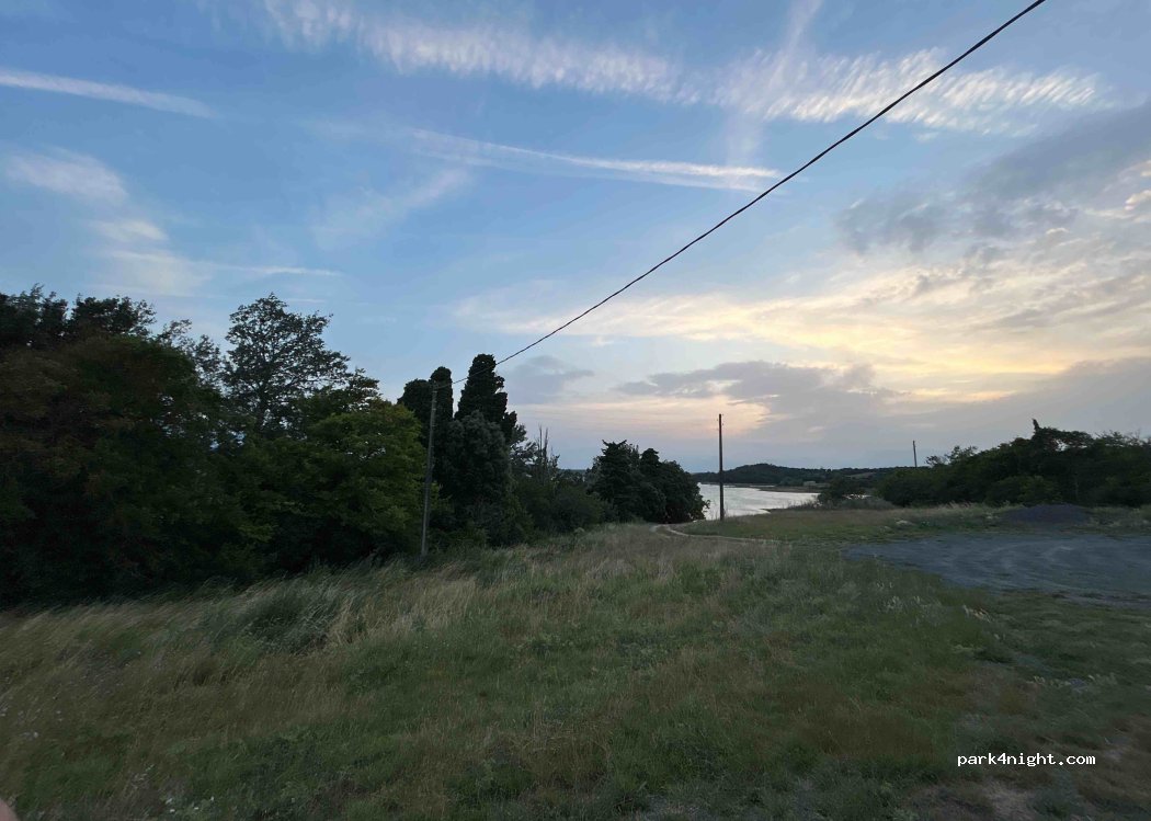 Super endroit au calme et éloigné du club de voile. Un grand champ légèrement en pente. Le panneau d'interdiction en haut du terrain est une volonté de la mairie et non du propriétaire du champ qui accepte bien volontier que l'on vienne se garer. Merci de respecter ce lieu et ce gentil propriétaire.