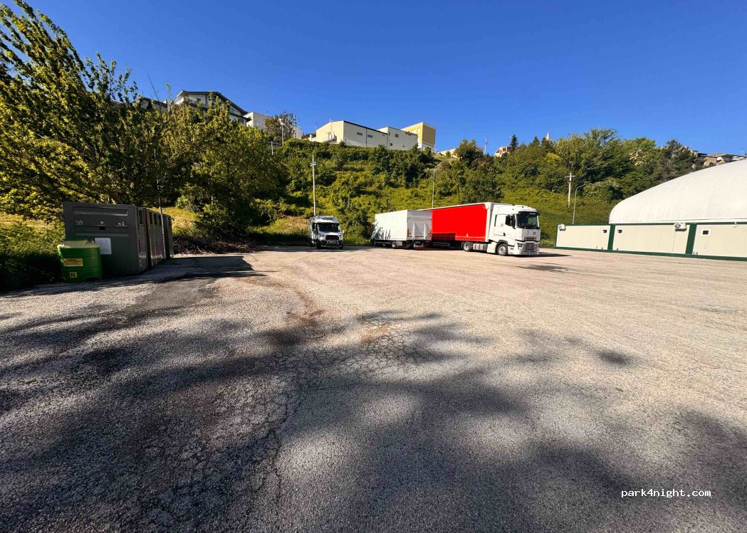 ampio parcheggio pianeggiante sul terreno di un vecchio campo sportivo in disuso, bidoni dell'immondizia utilizzabili solo dai residenti con un'apposita tessera. no servizi, silenzioso. notte tranquilla.