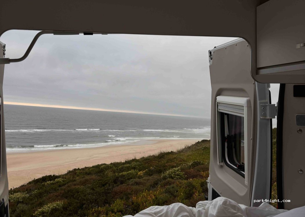 abbiamo dormito per una notte all’interno della pineta assieme ad altri 6/7 van. un tramonto sull’oceano davvero perfetto. la strada per arrivarci è in piano e fattibile per una macchina non 4x4. Molto vicino a Nazare per poter visitare la città. nessuno ci ha disturbato durante la notte. Vivamente consigliato!