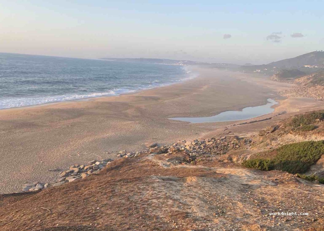 Nach einer sehr teuren Nacht im Olhai Outdoor Resort Nazaré (82 EUR, 1 Van, 5 Personen) sind wir an diesen wunderschönen Ort umgezogen. Zusammen mit 11 anderen Campern haben wir eine ruhige Nacht verbracht. Es gibt viele Parkmöglichkeiten. Die unteren Stellplätze sind nur für kleine Vans zugänglich. Der nahe Strand ist menschenleer, der Sonnenuntergang romantisch. Es gibt keine Infrastruktur. Bitte Platz sauber hinterlassen. Sehr zu empfehlen.