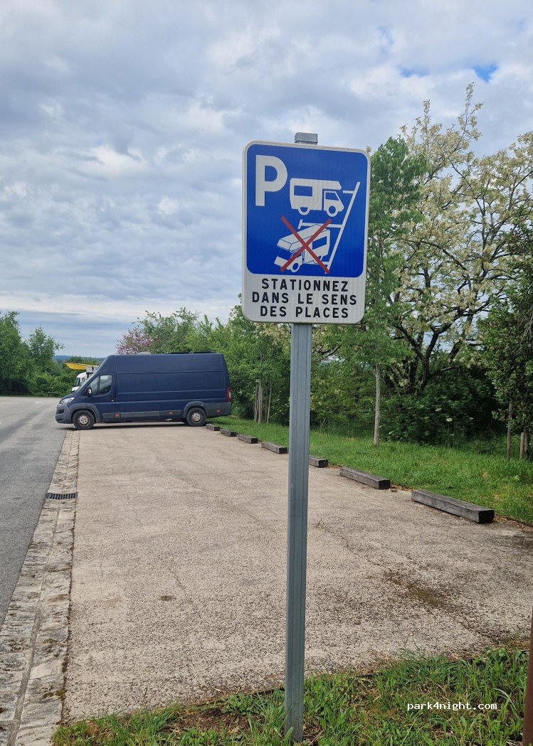 Parking P2 du château. idéal pour visiter rocamadour et à quelques mètres de l’ascenseur si besoin. cependant notre cc de 7,40m dépassait d’1 mètre de notre place car présence de rondins de bois qui empêchent de reculer autant que besoin . heureusement que nous étions seuls sur le parking ! vous aurions gêner sinon