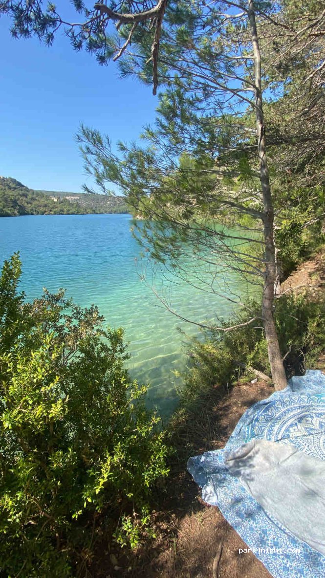 Naturist campsite "Verdon Provence", very quiet, close to nature. Access to the lake by a rather steep path, very natural (not recommended for children under 6/7 years (personal opinion)) .. The managers are helpful and pleasant. I advise for a real moment of calm and relaxation.