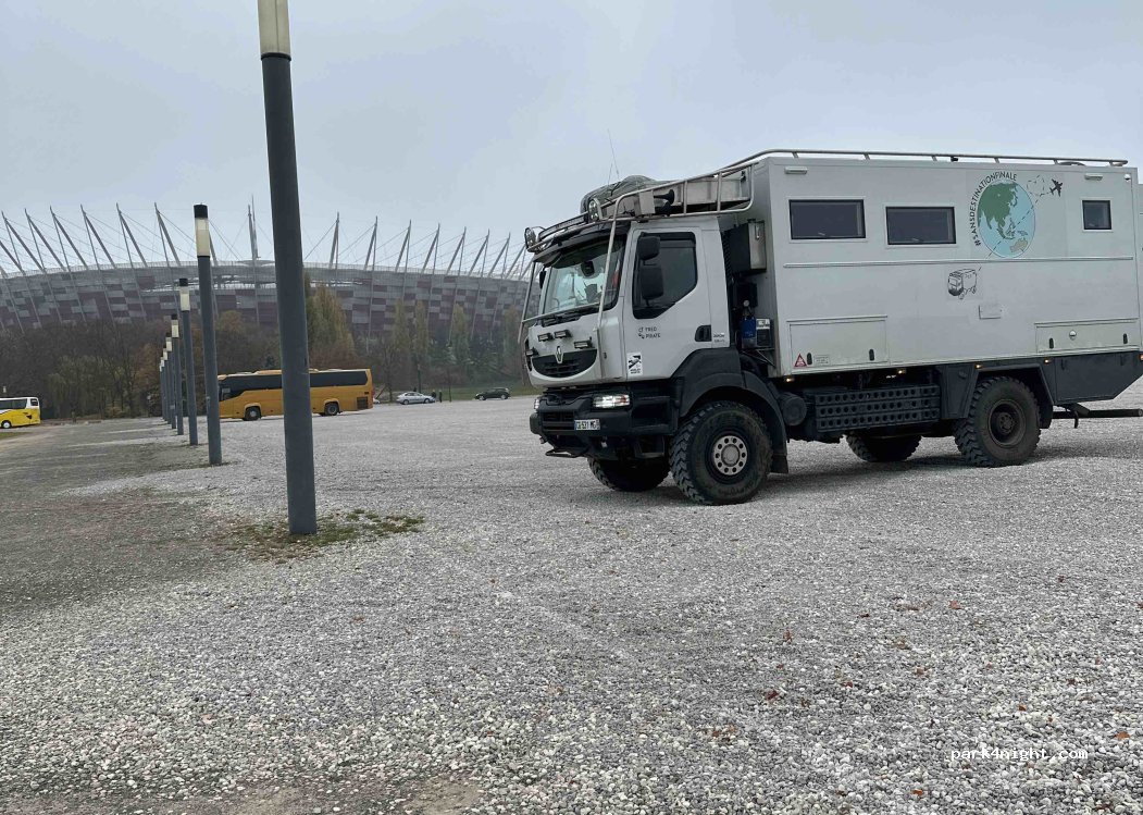 Parking P+R devant la gare : train, métro et tram à proximité. Gratuit sauf jour d’évènement. Nous avons payé 60zl. Très bruyant, fréquentés par des jeunes qui font des drifts. Non conseillés pour y passer une bonne nuit.