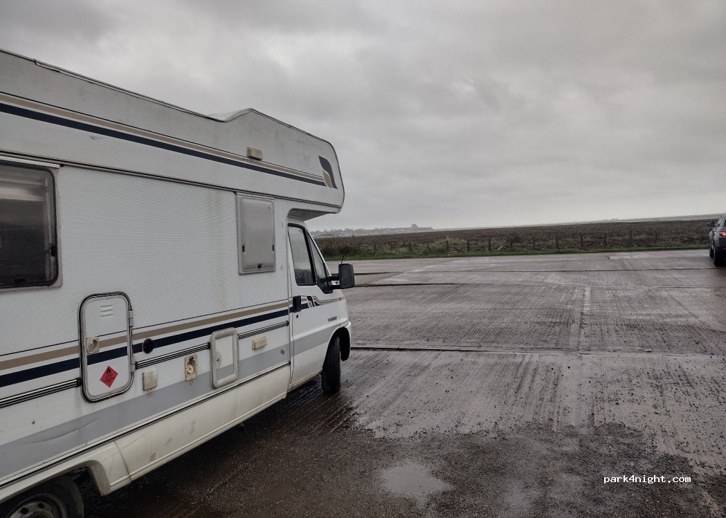 We parked up in the corner of the car park by the shipping container and had no trouble at all. We stayed from 3pm-3pm the next day. Lots of great walks around the area and great views. It’s busy during the day with dog walkers and There were a few cars that pulled up in the main car park throughout the night but didn’t bother us as we were in the separate bit (with all the pot holes right by the marshes) would definitely recommend this spot.