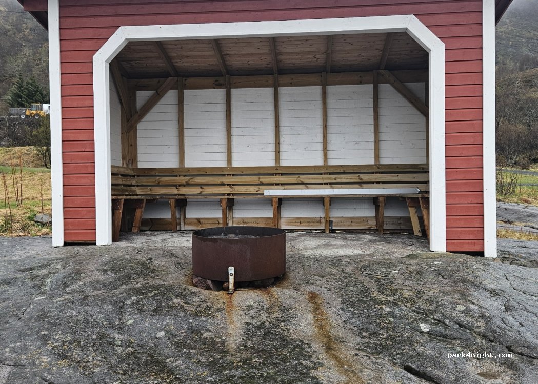 Camping pour tentes et camping-car. Fermé hélas au 15 septembre. On peut toutefois y vidanger et prendre de l'eau (tuyau de source) hors saison. Indiqué 50 nok à déposer dans une boite. (nous n'avons pas trouvé la boite). Descendre à la seconde maisonnette pour la vidange et à la suivante pour l'eau.