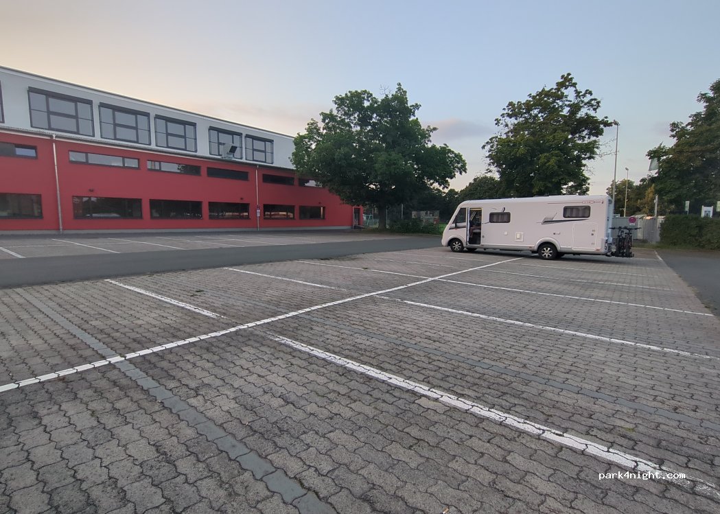 Direkt an der Turnhalle. Enger Parkplatz, auf dem auch einheimische WoMos stehen. Radfahrer und Fußgänger sind dort unterwegs. Zwischen 22-23 Uhr sehr laut. Nach dem Trainingsende wurde dort laut unterhaltend Bier verkostet. Mit dem Rad ist es nur knappe zehn Minuten in die Innenstadt von Bayreuth.