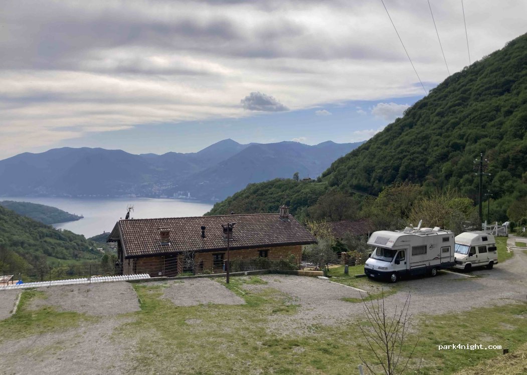 Area sosta molto bella, tranquilla e silenziosa, dotata di tutti i confort; piscina, area pranzo, piccola palestra, giochi per i più piccoli. Gestori molto gentili. Bellissima vista sul lago. Consigliamo di chiamare prima di salire. Non comoda ai negozi si consiglia di salire con la dispensa piena.