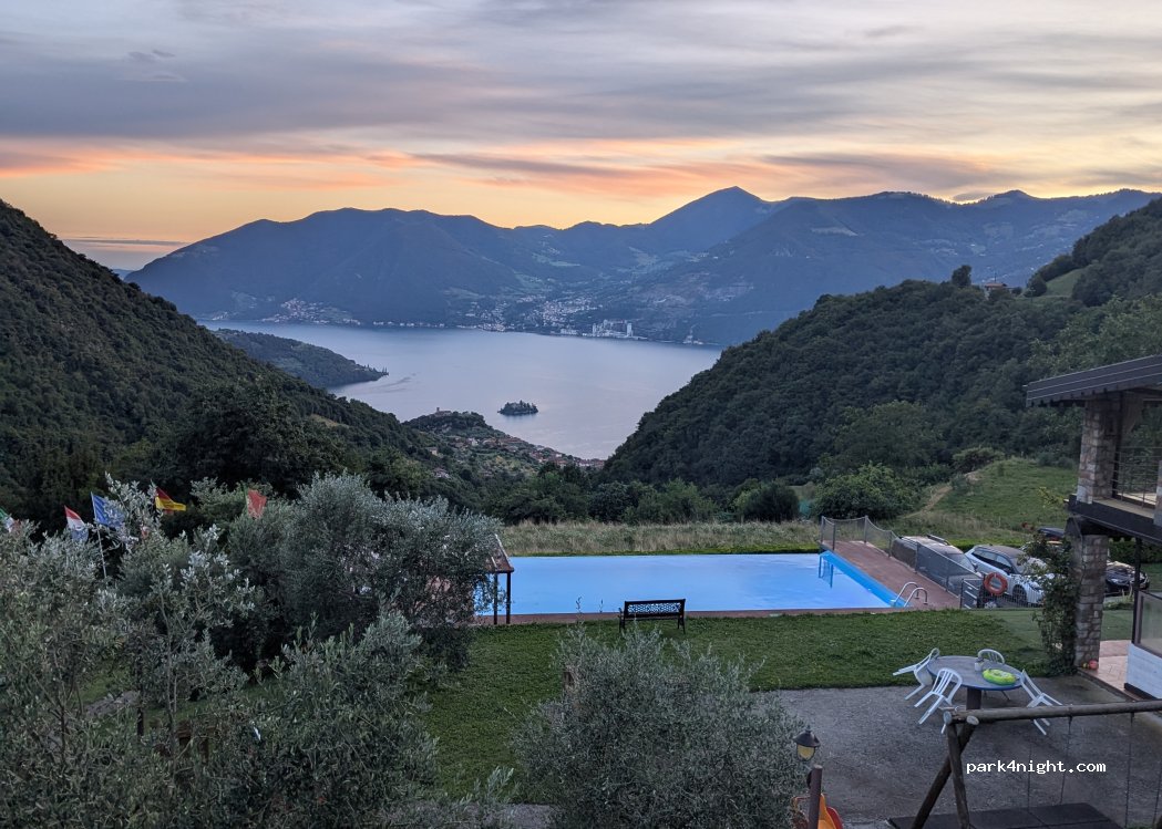 Ottima area sosta. Ben attrezzata e pulita. L’area ha una bella vista dall’alto sul lago d’Iseo. I proprietari sono davvero gentili e disponibili. Torneremo sicuramente in estate per utilizzare anche la piscina vista lago!