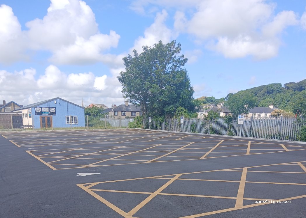 There are now 8 spaces. During the day, these are used by buses and lorries as a park-up, amusingly they parked in the yellow hatched areas between the motorhome spaces.... Short walk into town. Very noisy, next to the railway line and on a busy road. The Welsh Police would do well to set up a speed camera near here, there were people racing up and down for what felt like most of the night...