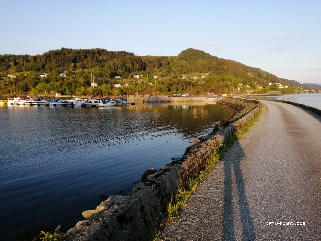 Depuis la E39 compter 10km de route étroite ou tout croisement est impossible. Heureusement beaucoup d'aménagement pour se garer. Il faut donc que un des deux véhicules recule pour laisser la place. En van nous n'avons pas eu de problème. Endroit calme et de toute beauté.