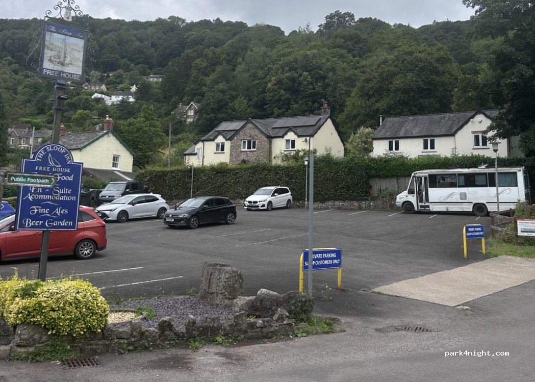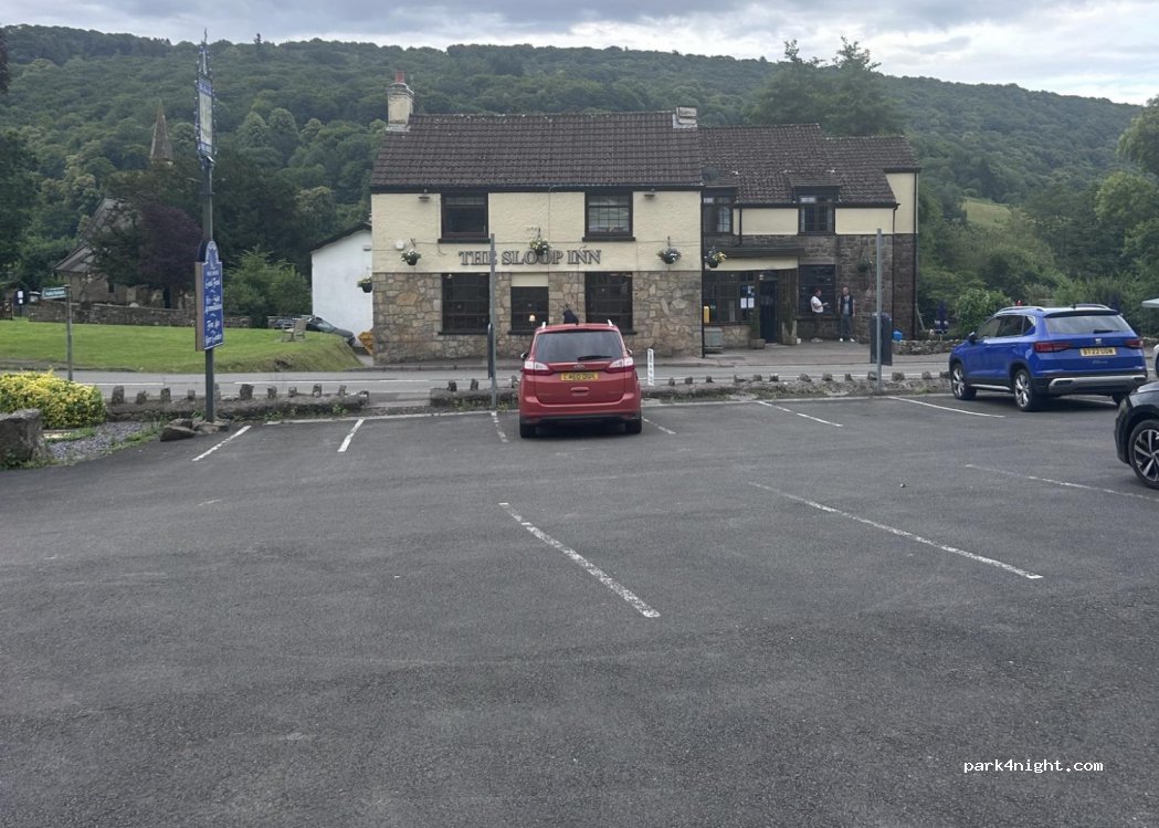 Friendly owner of the Sloop Inn let us stay the night in the car park. We missed dinner but got lunch the following day. Car park is sloped and a bit of road traffic in the morning, but felt comfortable and safe and great to be such a short drive from historic Tintern.