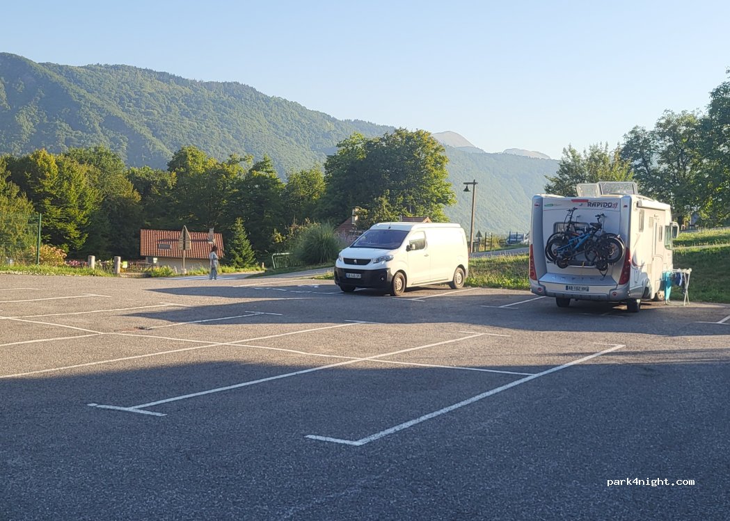 Parking de l'école, parfait un samedi soir. Très calme, très joli village pour une balade digestive. Boulangerie à 2mn à Faverges avec excellent pain