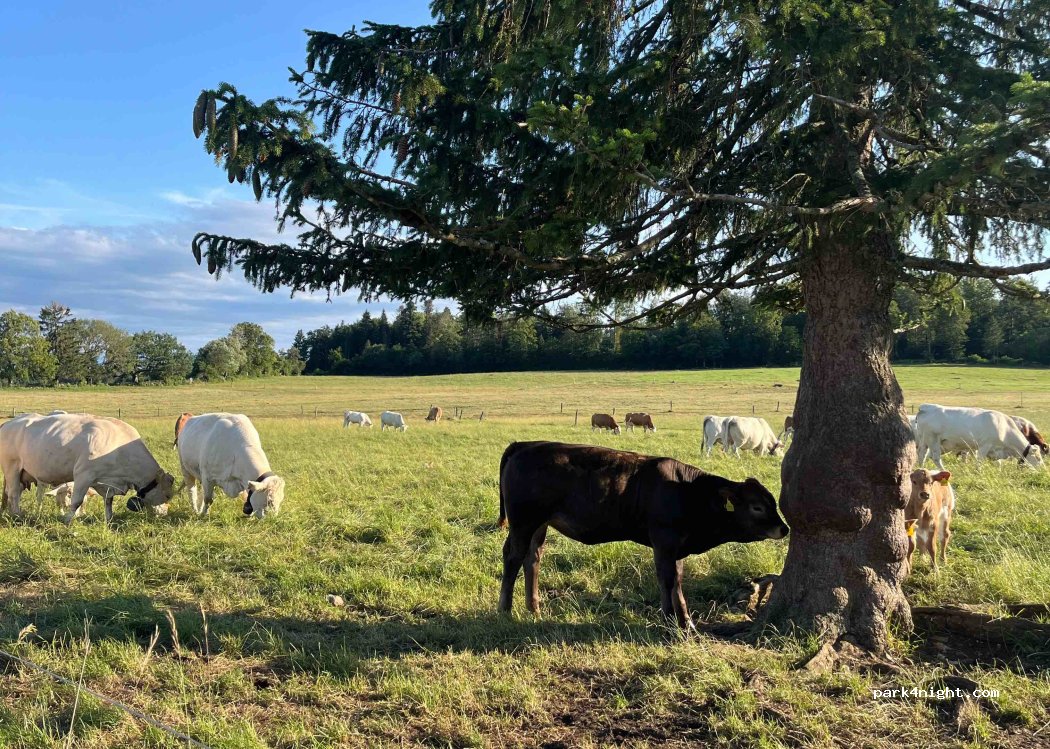 Super spot ! Attention à l’entrée, le chemin est très troué ! L’endroit est magnifique, prairie au milieu des arbres. Nous entendons les cloches des vaches, nous avons même pu observer un feu d’artifice de loin ! Je conseille vivement d’y arriver quand il fait encore jour pour observer au mieux le terrain et choisir un endroit plat.
