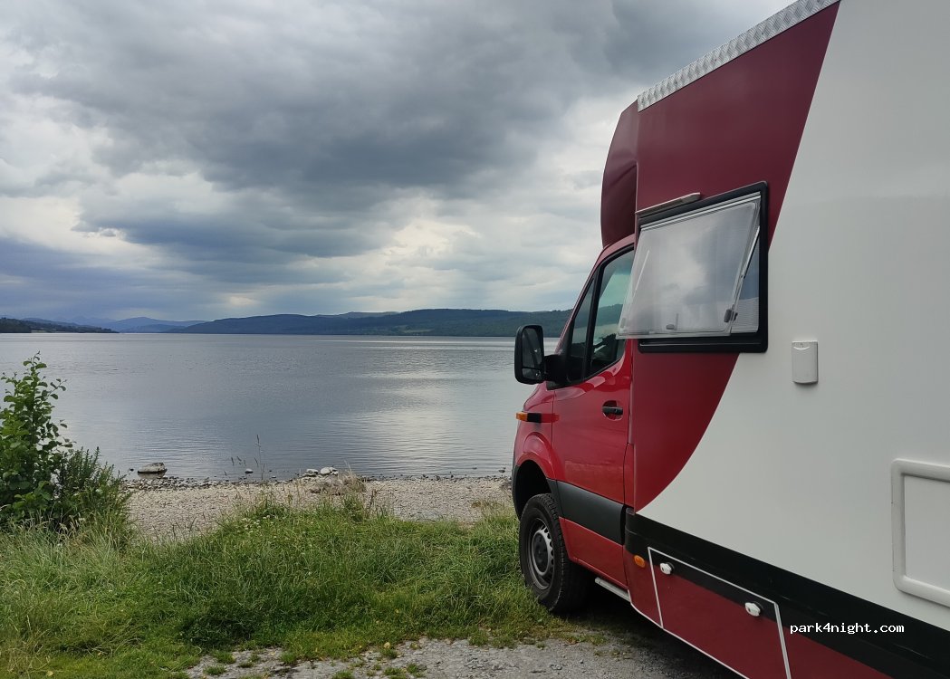 What a find to start out first night north. lovely location right next to the Loch. Nice and quiet. 3 or 4 other campervans parked up. No trouble parking our 18ft camper.