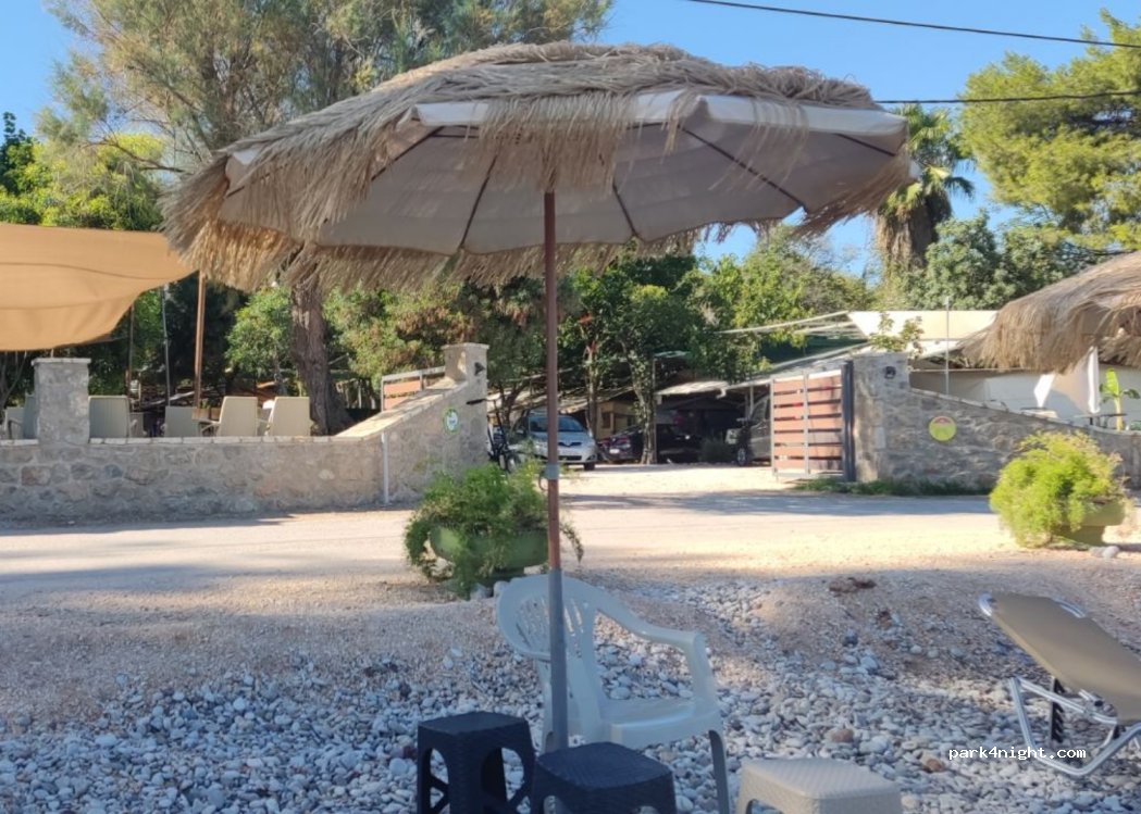 We spent 1 night there. We were 5 (2 3) and paid 20€ with electricity. Nice beach, nice bar, solid sanitarias, but all to all it looked like a greek commune. Ok for sleep over.
