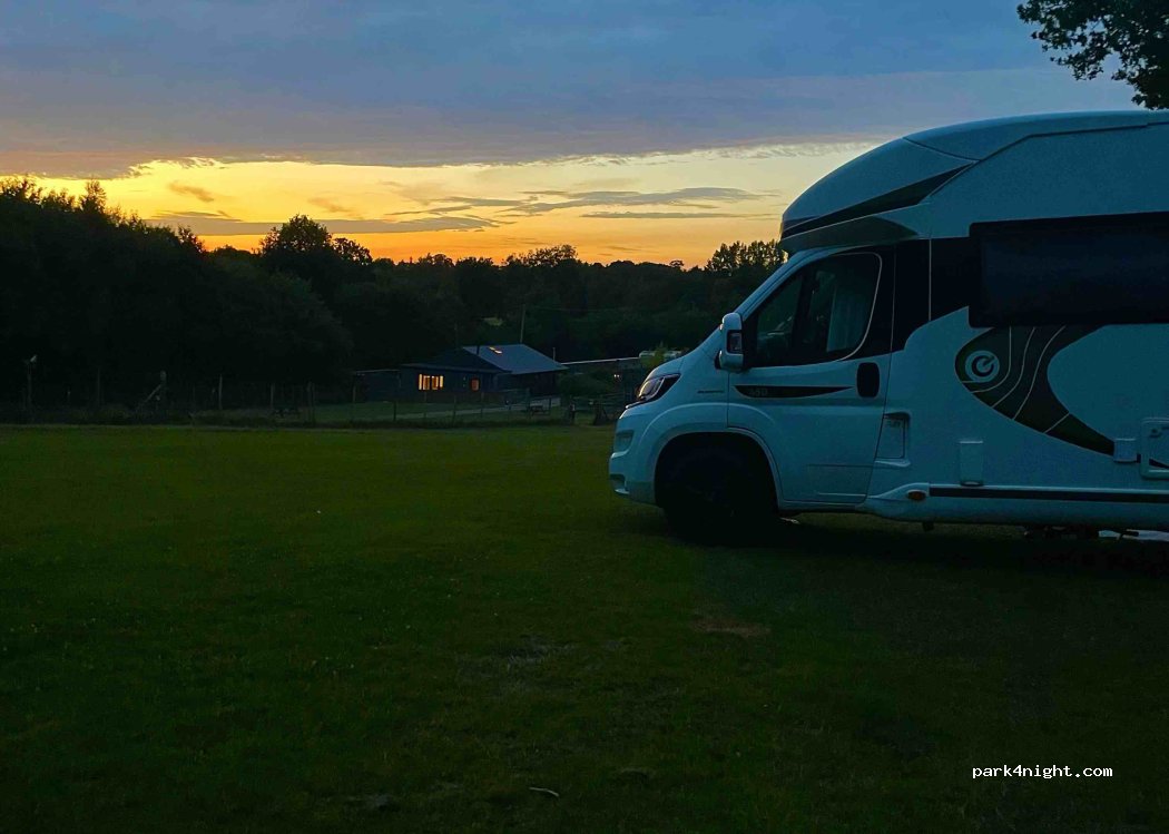 lovely peaceful spot, surrounded by woodlands. slight slope. All amenities available and helpful owners. we paid £25 pounds for the night for our camper with an electric hook up.