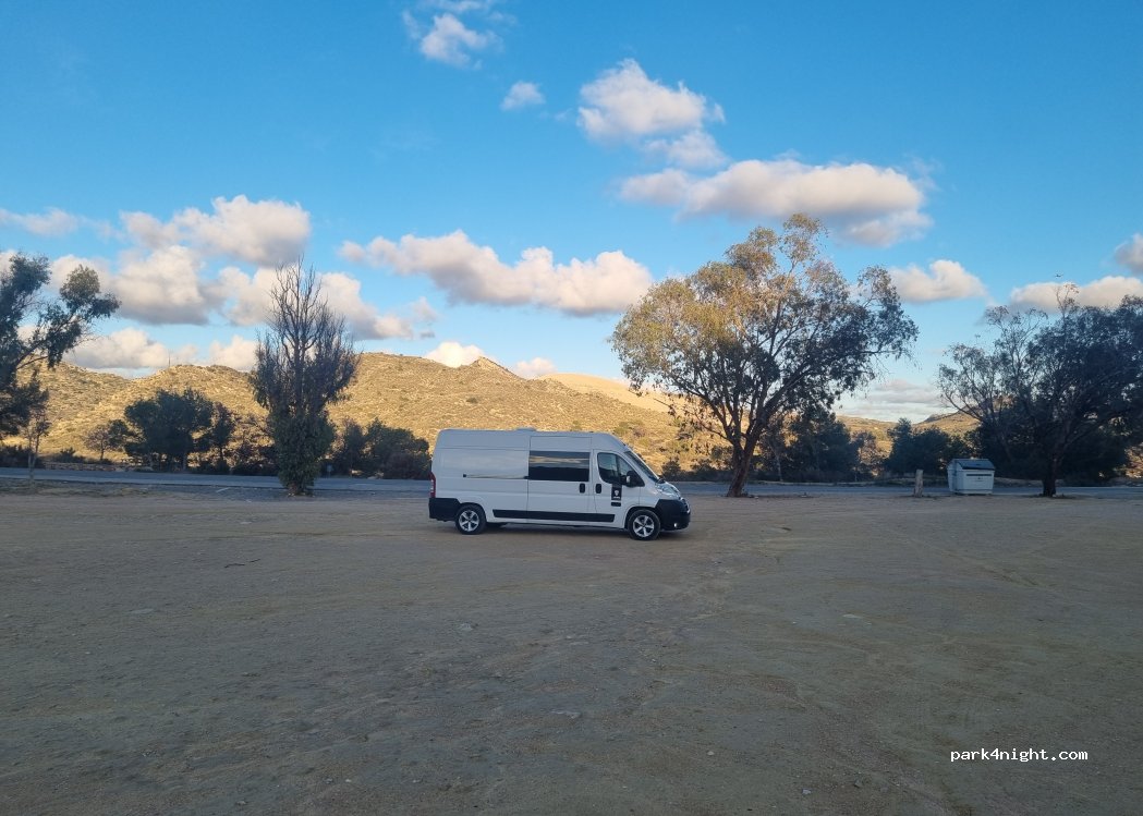 It's free firstly also a dead end road so no passing traffic enough space to park 20 motorhome on flat ground on opposite side road there are loads of picnic area on different levels and below that is a small valley with stream and waterfall running dog friendly I am here 2 days now and locals are plesent only down side is every 20 Minuit a plane fly across with is nice to see and there not loud