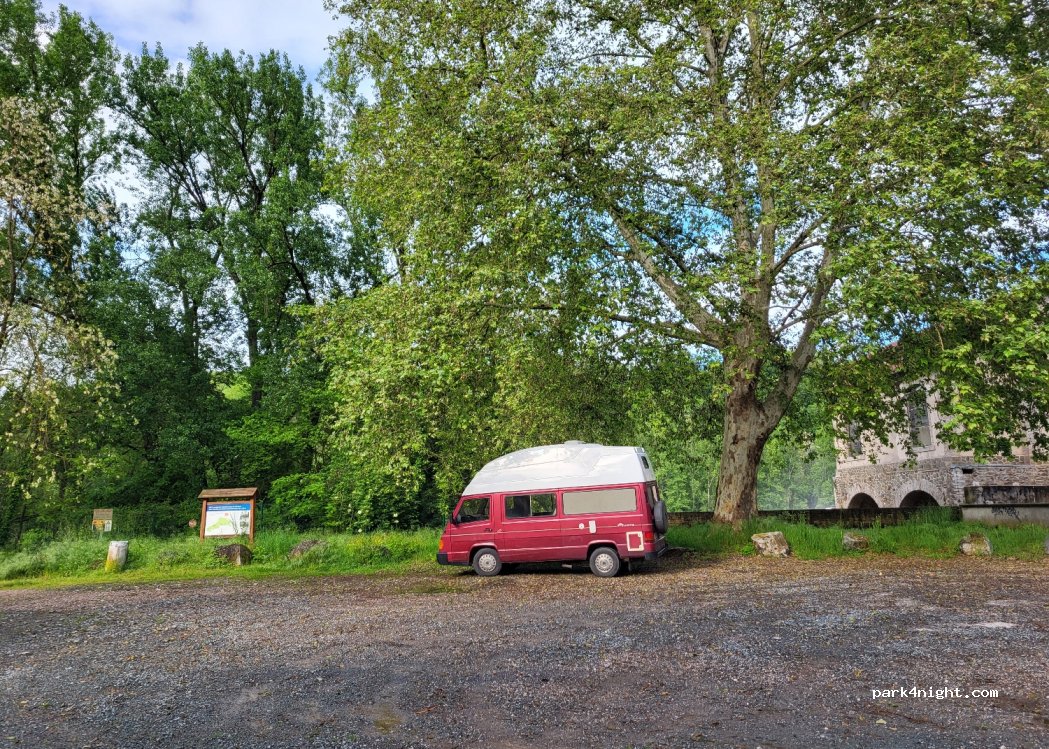 Les plus : il y a des toilettes, poubelles, jeux pour enfants et table de pique-nique. Les moins : Tarn en contrebas inaccessible à cet endroit, il y a une sorte d'usine hydraulique qui faisait un bruit de fond, beaucoup de passage et 2 camping-cars avec des chiens qui semblent installés là depuis longtemps... Nous ne sommes pas restés