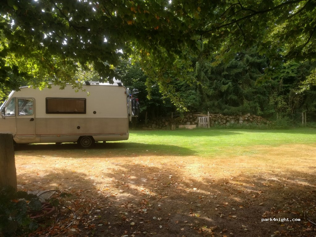 Übernachten Sie im privaten parkähnlichen Garten :-) Bitte fahren Sie nur nach vorheriger Anmeldung dorthin! Im Garten der lustigen Leute gibt es einen kleinen versteckten Campingplatz auf ebener und gepflegter Wiese mit 2 Stellplätzen für eher kleine Camper bis ca. 5m Länge. Ein riesiger Garten, der an die Campingwiese angrenzt, darf ebenfalls genutzt werden. Dieser ist komplett eingezäunt und sicher. Es gibt gemütliche Ecken und Sitzgelegenheiten wie z. B. die Baumbank unter der Linde. Das Anwesen ist von Pferdekoppeln, Obstbäumen und Wald umgeben. Sehr ruhig und naturnah, gut verträgliche Hunde sind erlaubt und herzlich willkommen. Unbedingt vorher anrufen, besser noch vorher per whatsApp melden, sonst steht man vor dem verschlossenen Tor. Das Gelände kann n.Absprache bis 23:00 Uhr befahren werden. Auf Anfrage ist ein Frühstück erhältlich. Einfach abends bis 19:00 Uhr die Bestellung auf dem Zettel ankreuzen. und morgens die Brötchen im Bus genießen... Wir behalten uns vor, euch einen Platz im Innenhof zuzuweisen, falls die Wiese witterungsbedingt nicht befahrbar ist. Bitte beachten: Dusche und WC stehen nicht zur Verfügung, ihr müsst autark sein!!!! (Nummer für PRO-Abonnenten verfügbar)