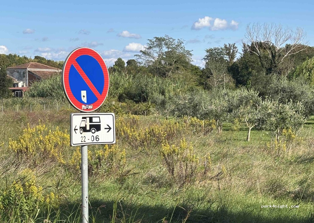 Bel posto con bella vista, ma ATTENZIONE vige divieto dalle 22 alle 6 (ved. Foto). La polizia passa spesso. Al vicino porto divieto assoluto tutto il giorno.