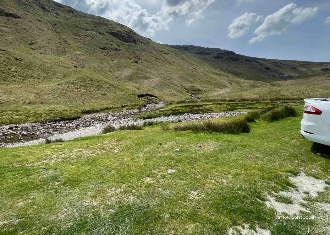 Beautiful and peaceful. My favourite spot in the Lake District. Its very secluded, but there is a little cafe 10min up a hill where the mining shaft is, plus a tour of the shaft if you fancy it. I’d definitely come here again. Took a few bits of litter home with us from previous campers - this place is too beautiful to be spoilt. There’s a few small areas to park on route but look for the space that easily accommodates 4/5 campers. Way nicer than the pictures.
