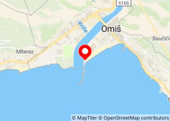 Gravel parking at the exit of the millstream of the port of Omis. Shallow sand beach with shower, toilet on the beach and small bar not open yet. Perfect to see the sunset by going to the end of the lighthouse dyke green. There is also a windsurfing school located on the campground on the other side of the channel.