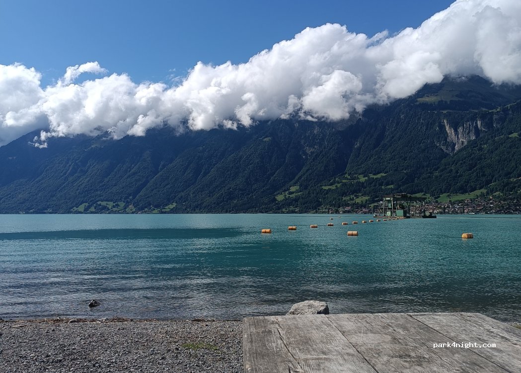 Easy to find and park by the lake. We then walked into Brienz from there. BBQ facilities by the water. Great views. No services. There is an expensive campsite around the corner, where you can nip in and use the facilities for free.