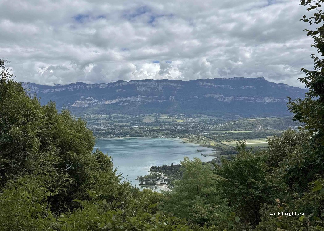 Sitio estupendo para psar la noche. Poco tráfico y un banquito donde poder sentarse a contemplar el lago. Recomendación: ir a la playa de Le Bourget du Lac, gratuita a partir de las 17.00.
