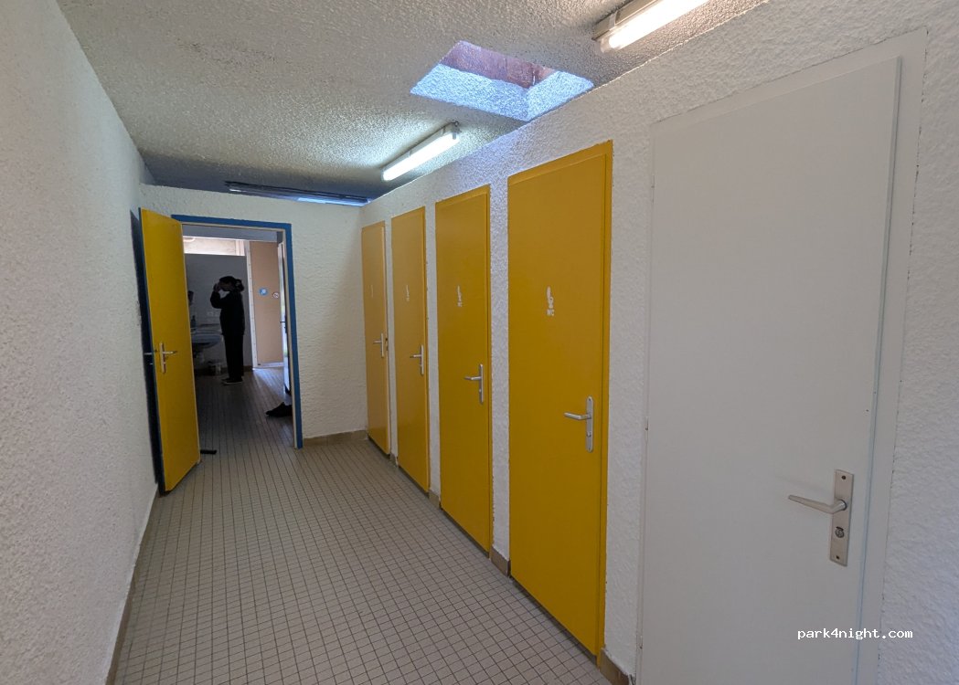 Camping calme. Sanitaires bien entretenus " dans leur jus ', dans un espace clos. Douches chaudes. Emplacements délimités par des rangées d herbes folles, en attendant que des arbrisseaux poussent.