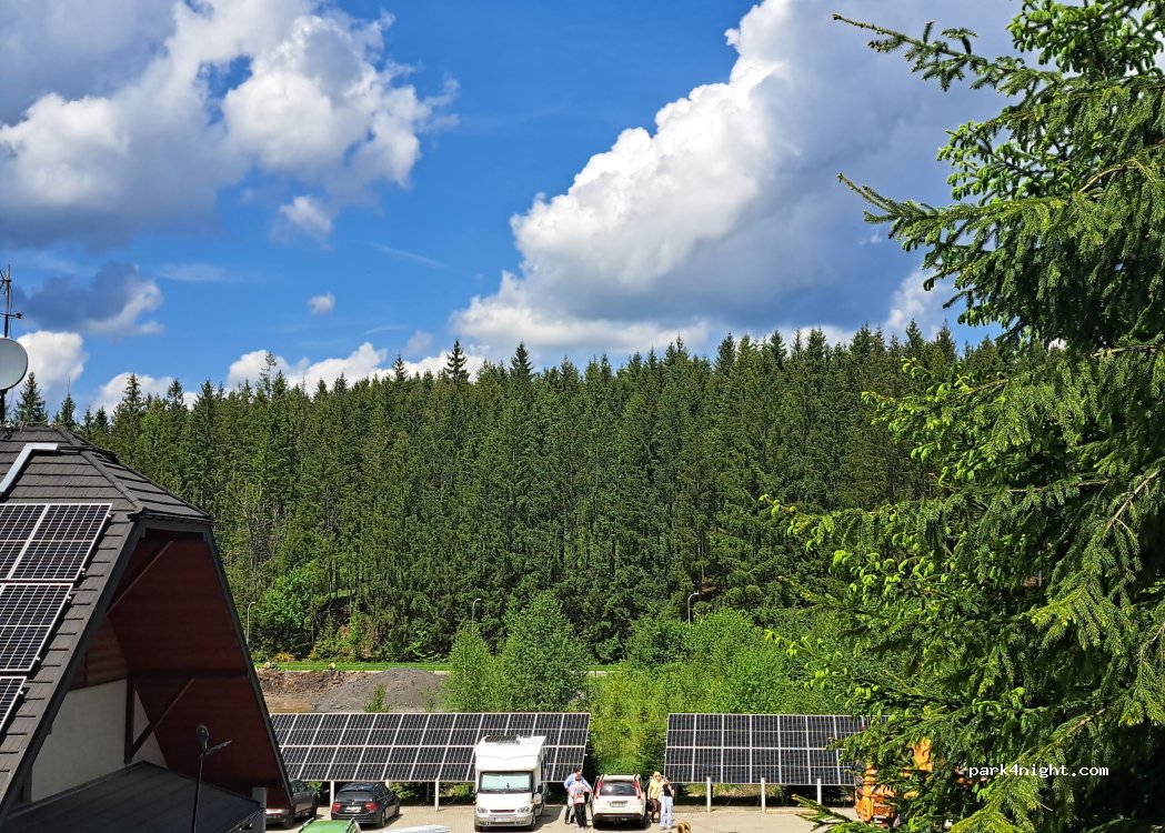Large free parking in front of aquapark Olza, without amenities, calm and secure. Open all season. On reception desk od Olza Park friendly staff - shower possible. Great Aquapark.