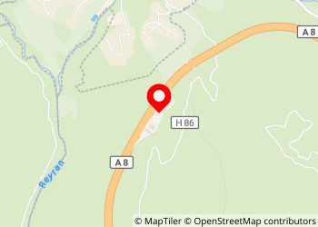 Aire de l'Esterel, station essence, boutique, croissanterie, sanitaire propre, gonflage. téléphone SOS. robinets d'eau exterieurs, prise rasoir 120. 230v. Derrière les sanitaires se trouvent un robinet poussoir.